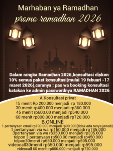 khusus klien yang booking konsultasi jarak jauh melalui tombol whattapp ini akan mendapatkan diskon 10% daei harga paket yang dipilih. Mohon pelajari website ini atau tanyakan ke admin jika ada yang tidak dipahami.